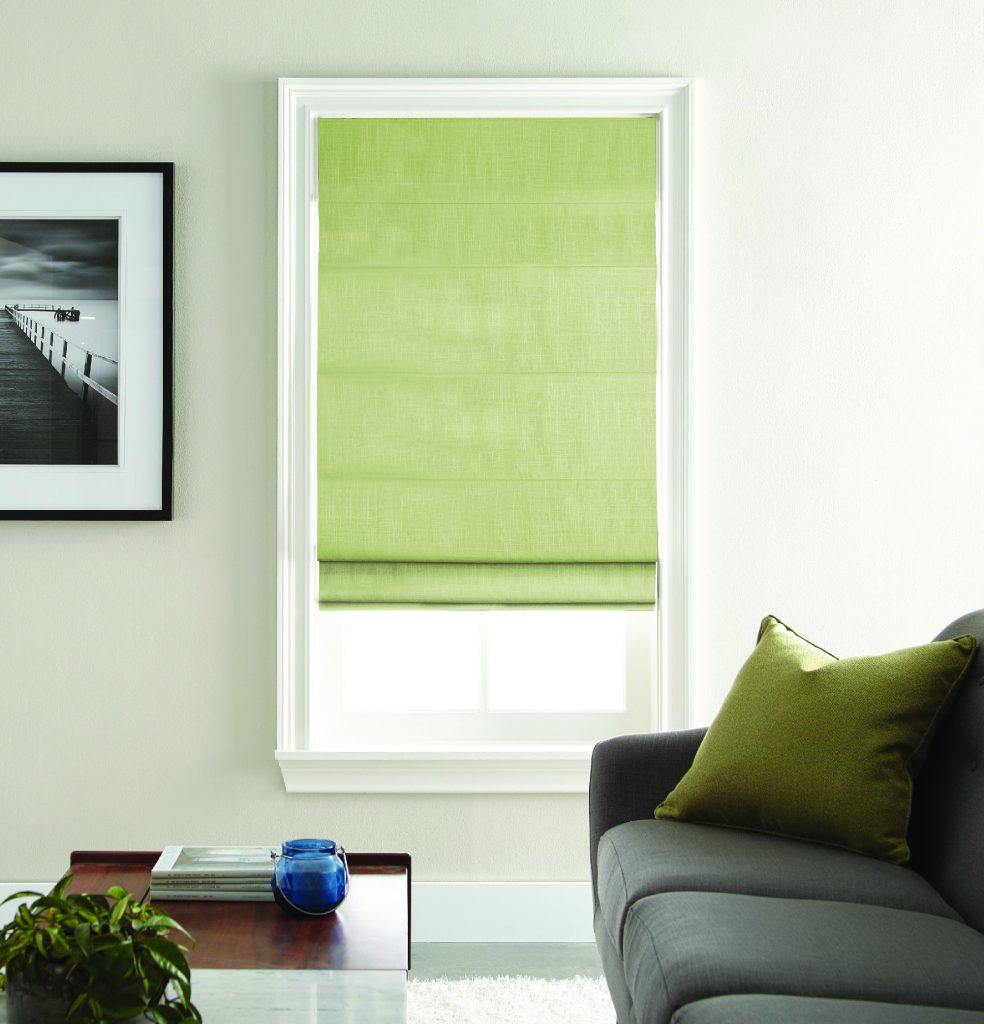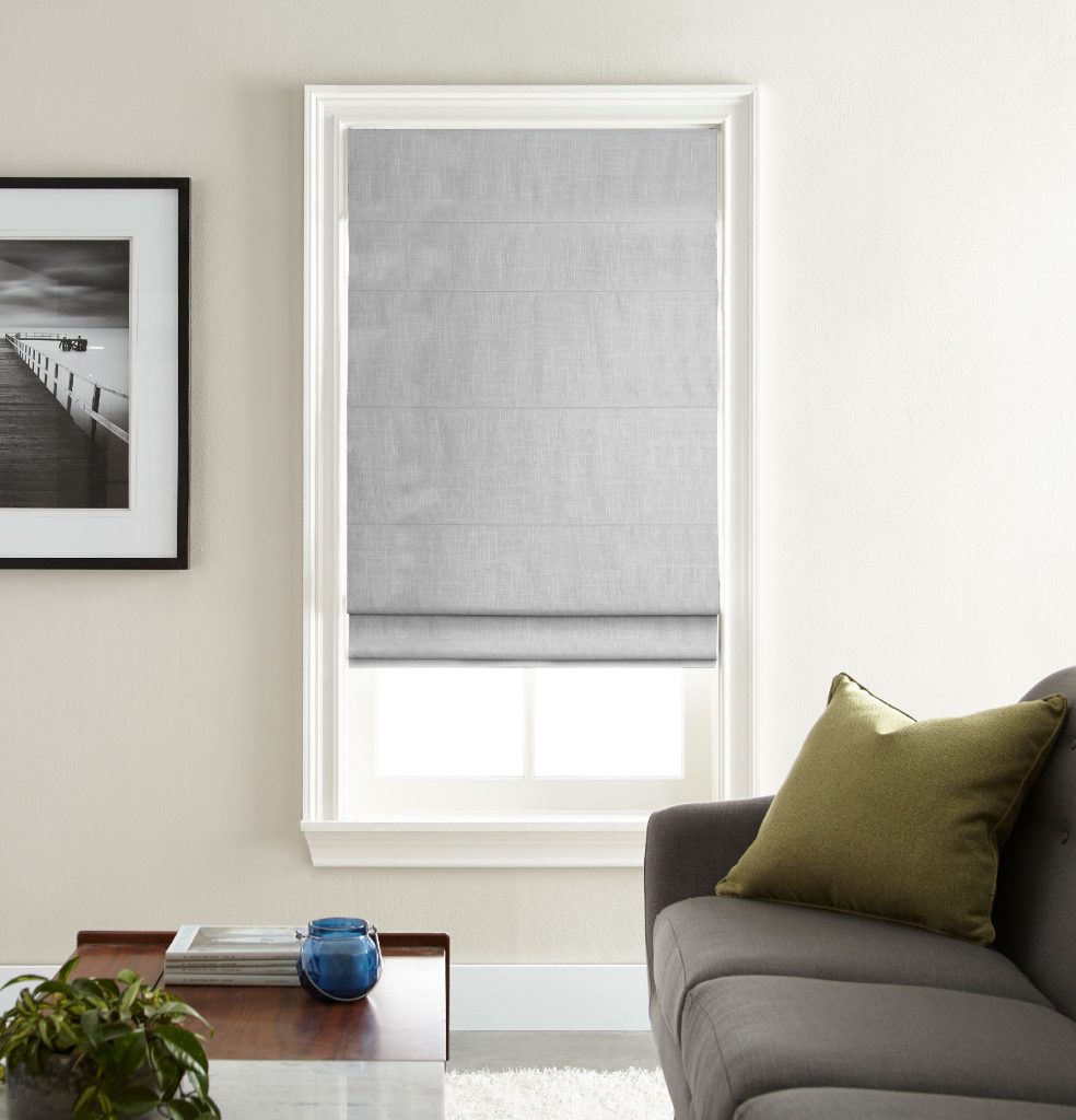 Our truly cord-free Roman shade closes with a simple tug on the handle. Upon release, the shade folds up smoothly, quietly, and on its own – like a motorized system, but at a fraction of the cost!